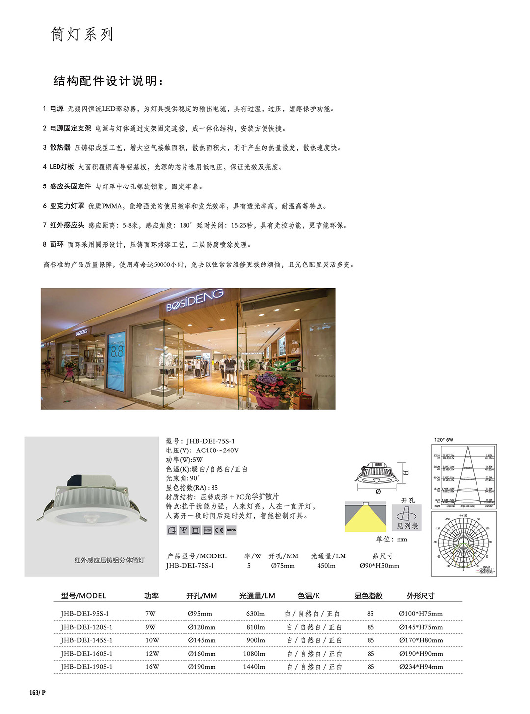 - 型号:JHB-DEI-95S-1 规格:Φ100*H75MM 开孔:95MM 色温:暖白/自然白/正白 功率:7W 输入电压:AC 100V-240V