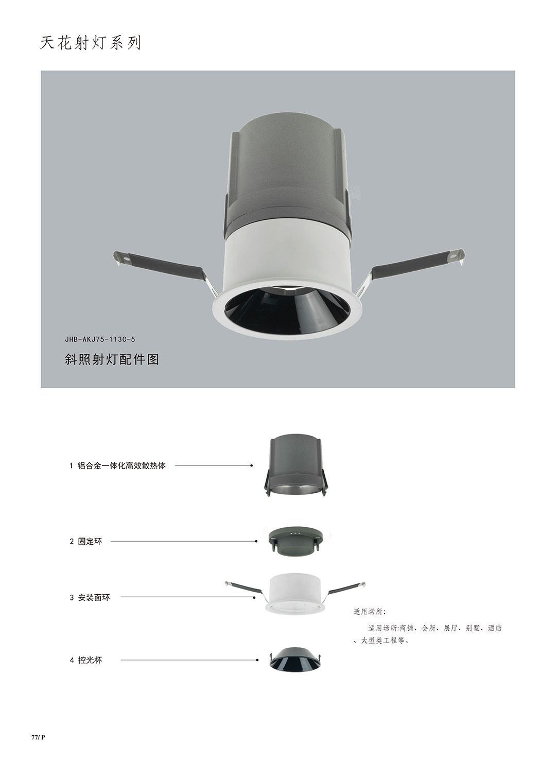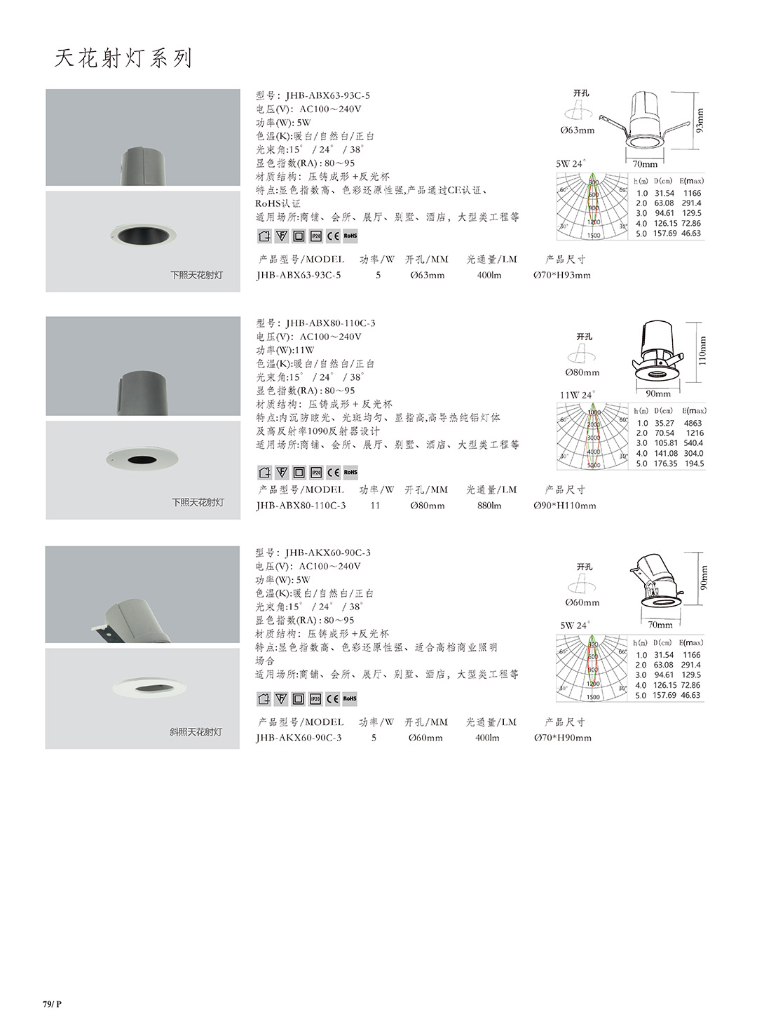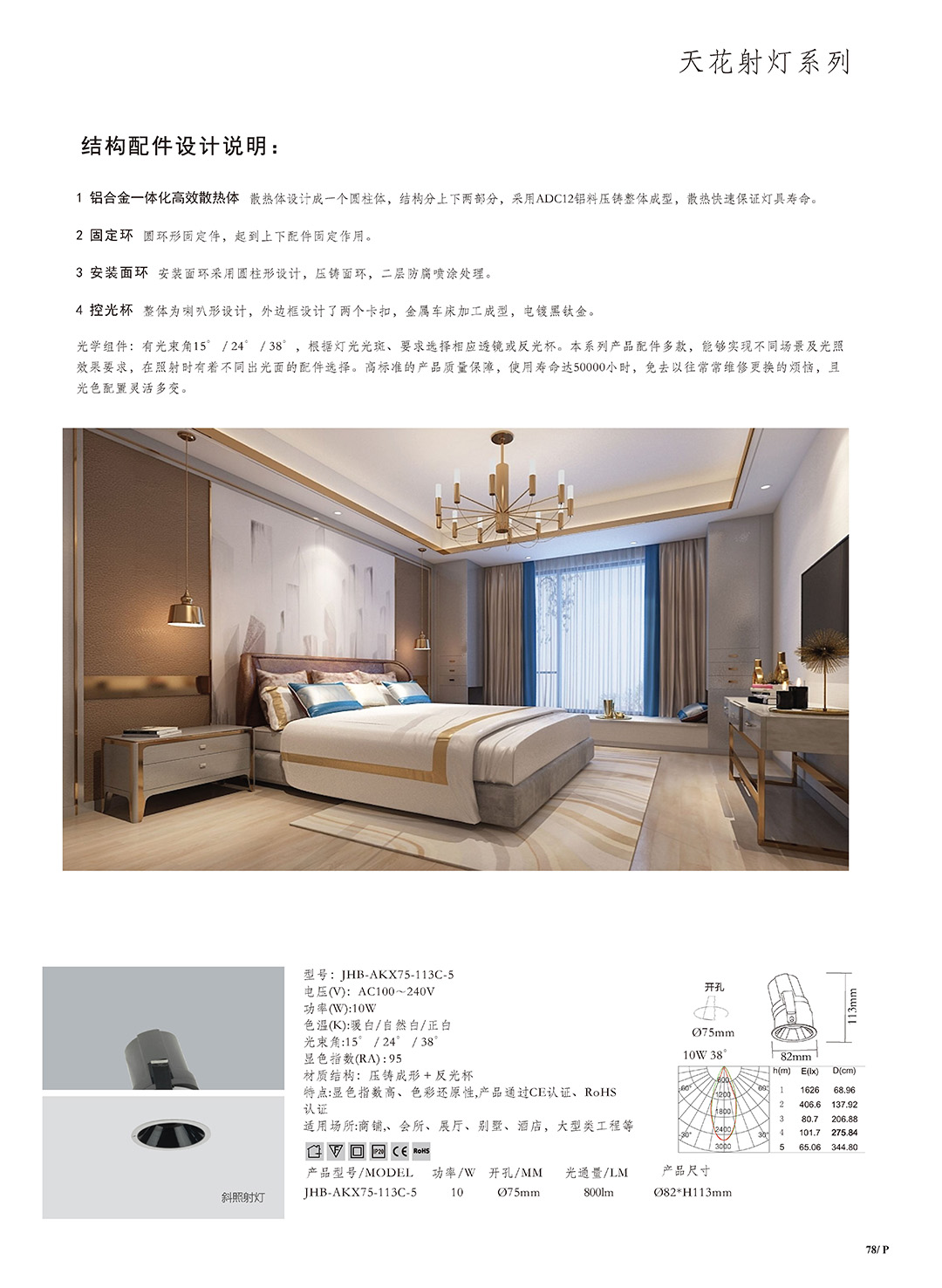 - 型号:JHB-AKJ75-113C-5 规格:Φ82-H40MM 开孔:69-78MM 色温:暖白/自然白/正白 功率:5-7W 输入电压:AC 100V-240V