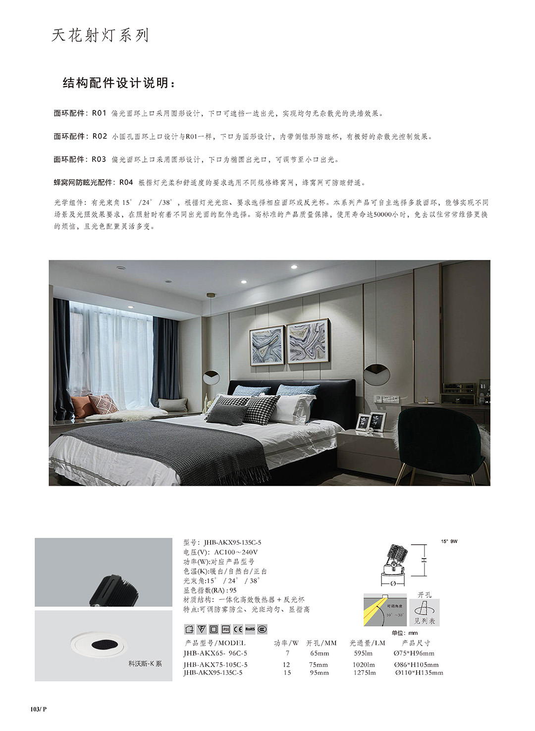 • 型号  :JHB-AKF65-96C-5 规格  :Φ75-H96MM 色温   :暖白/自然白/正白 功率   :5W 输入电压:AC 100V-240V