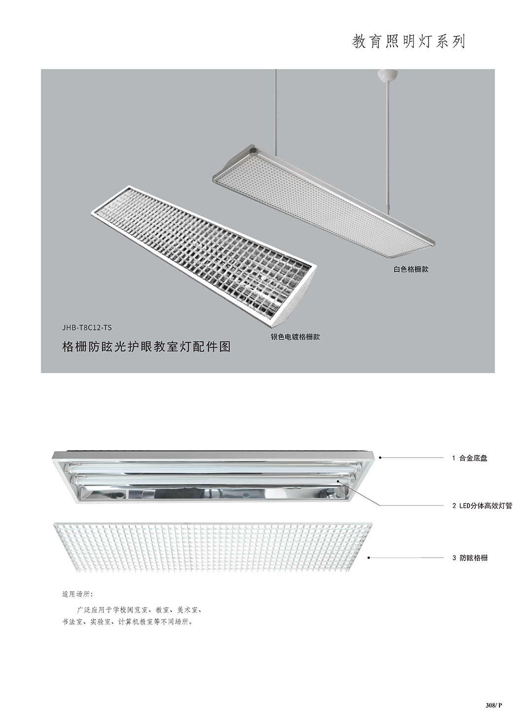 格栅防眩光护眼教室灯